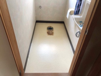 便器を撤去した後 クッションフロアを貼り換え便器を設置します