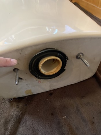 タンク下の劣化した密結パッキンと締め付けボルト×2本です