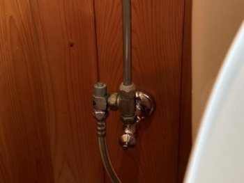 劣化したアングル止水栓を交換します