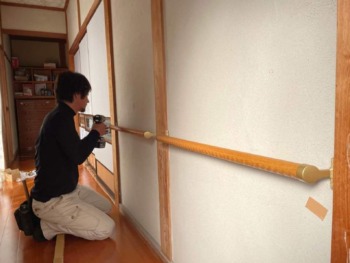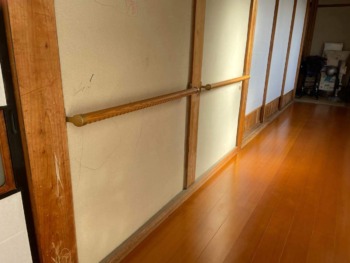 | お客様のご要望 | 「おばあさんが帰ってくるから手すり玄関から部屋まで手すりを付けてほしい」というご要望でお電話をいただきました。 |