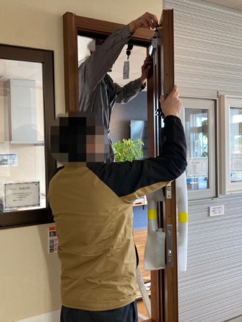 新しいドアの設置です。