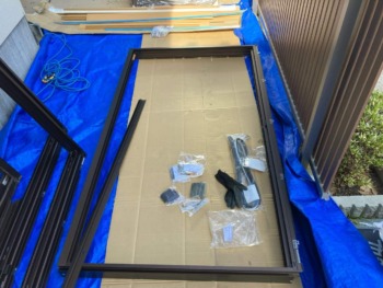 防水シートの上から、新たな枠を取り付けます