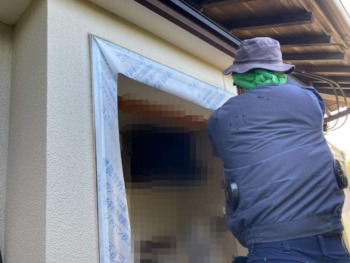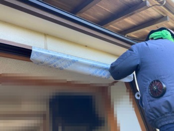既存枠に、防水シートを取り付けます