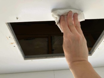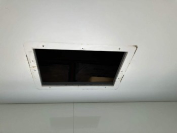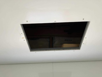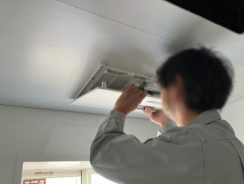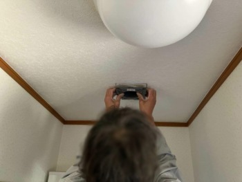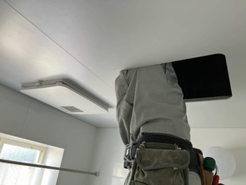 天井点検口を使い、排気ダクト接続口とダクトを切り離します。