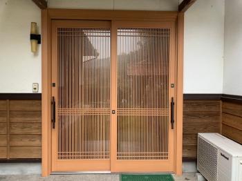 | ご提案内容 | 雰囲気を一新する為 明るい木目柄の玄関引き戸+網戸をご提案させていただきました |