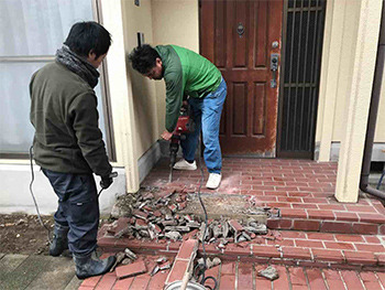 玄関ポーチタイルも新しくするので解体していきます。