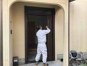 既存玄関ドア外枠は活かし既存部を解体します。