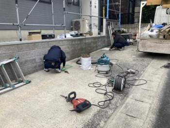 柱を立てる位置を確認し、柱基礎の穴を掘ります。
