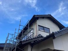 高いところなので足場を組んで作業します
