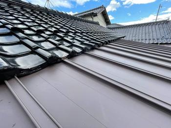 手前のガルバリウム屋根の色に合わせて同仕様で施工させていただきました