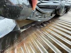 瓦との取り合い部は瓦棒凸部にコーキング処理を行います