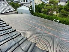 コロニアル屋根の上にナミイタが重ね張りしてある状態でした