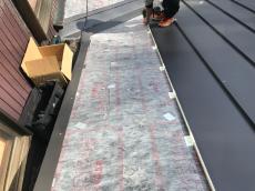 金属屋根の美しい屋根へ 遮音シートをかけてあるので金属屋根でも静かな雨音となっております
