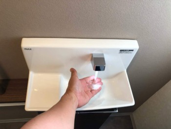 自動手洗い器は出水と同時にLEDライトが点灯いたします
