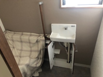 内装工事完了⇒便器&手洗い器設置いたします