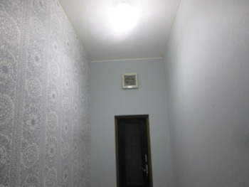 パテ処理後 天井壁のクロスとクッションフロアを施工していきます