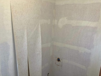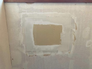 手洗い器を撤去後、ボードで補修します。