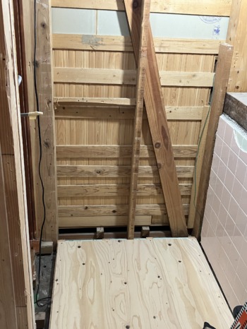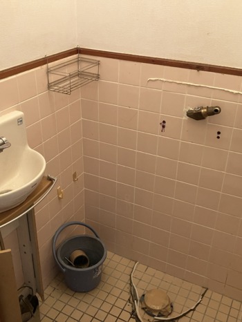 タイルの一部はブロックとなっておりましたので解体せず壁に入れていきます