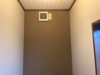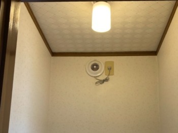 新しい換気扇です。壁紙も貼り替えて、より落ち着く空間へ変身です。
