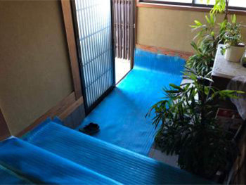 お客様のお部屋を汚さないように通り道には養生を張り保護します。