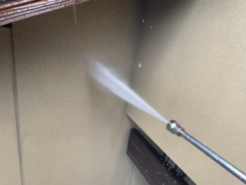 足場を組んだ後、外壁を洗浄します。