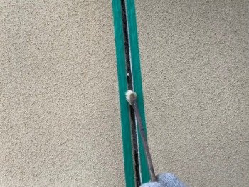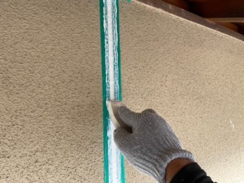 古いコーキングを撤去です。