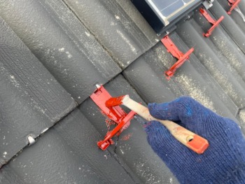 雪止めへ錆止めを塗布です。