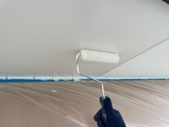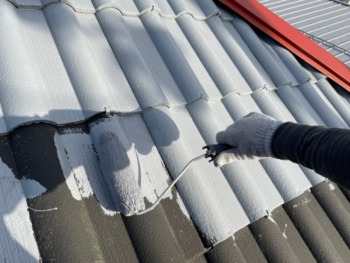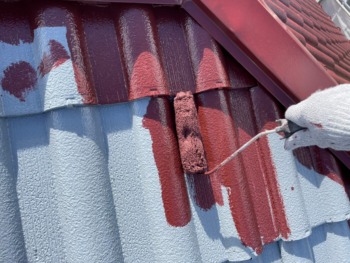 屋根上塗り1回目です。