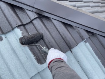 屋根の下塗りをします。