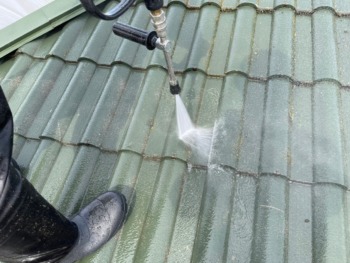 屋根を高圧洗浄で綺麗にします。