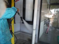 各所丁寧に高圧洗浄機でまず汚れを落としていきます。