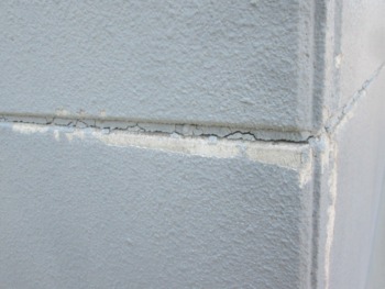 シーリングのひび割れ・外壁の欠損が見られます。