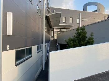 スロープの外壁も変色・劣化が見受けられ塗膜がはがれていました。