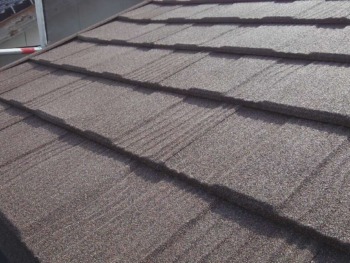 Tルーフを近くから見るとこの様な素材です。対候性に優れた、天然石がコーティングされています。