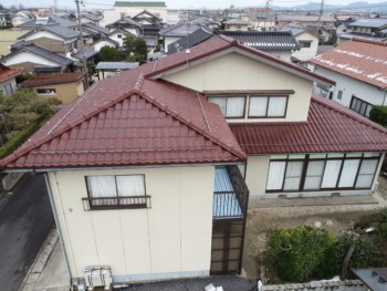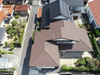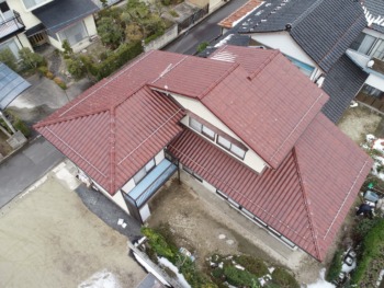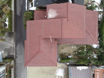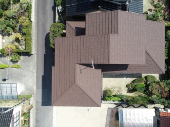 新築時はスレート屋根で、その後カバー工法でセキスイかわらUが施工されてます。