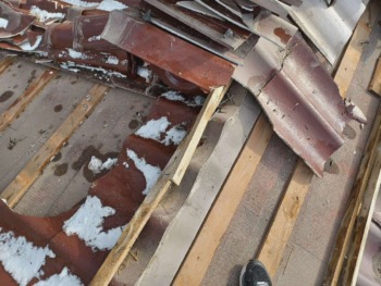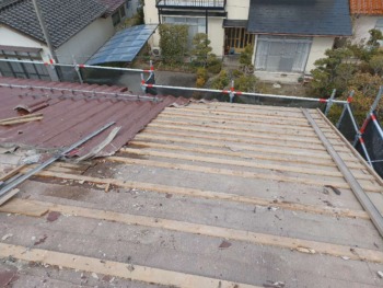 既設屋根を撤去中です。