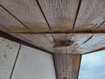 破風板は木部保護塗料が塗装されていますが、塗膜の劣化が見受けられますので再度木部保護塗料で保護していきます。