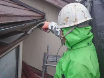 全体的に高圧洗浄で洗浄していきます。