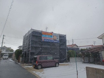 飛散防止にメッシュシートを張って足場組み立て完成です。