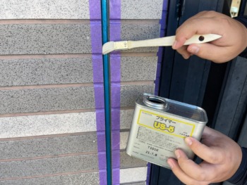 補修剤をしっかり密着させる為、目地プライマーを塗布します。