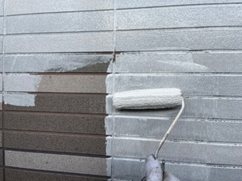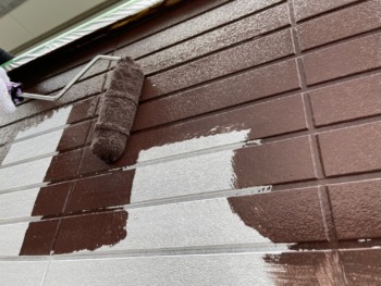 外壁下塗りです。下塗りをしっかり行わないと上塗りが長持ちしませんので丁寧に仕上げます。