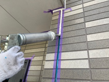 しっかり丁寧に目地にコーキング材を充填します。