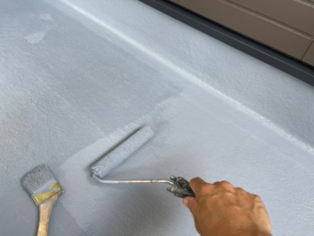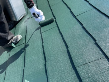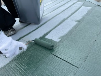 屋根下塗り後上塗り1回目です。