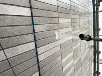 壁の汚れを高圧洗浄機でキレイにします。
