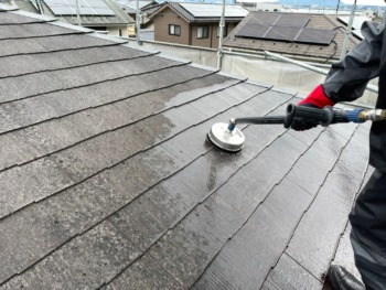屋根の汚れも高圧洗浄機でキレイにします。