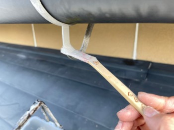 錆止めが乾いたら小さいローラーでムラなく、樋、鉄部へ塗布していきます。