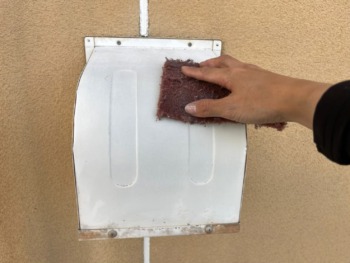 換気扇外部カバーをケレン作業で錆や汚れを落としていきます。