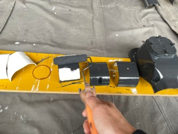 外部カバー下準備完了後、塗布です。