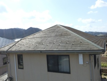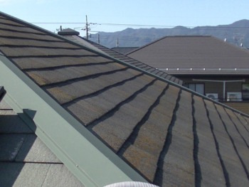 スレート瓦の防水性が乏しくなり苔が生えてきていました。