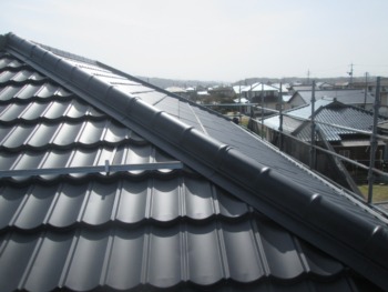 劣化していたスレート瓦は金属成形瓦となりこのように美しく。